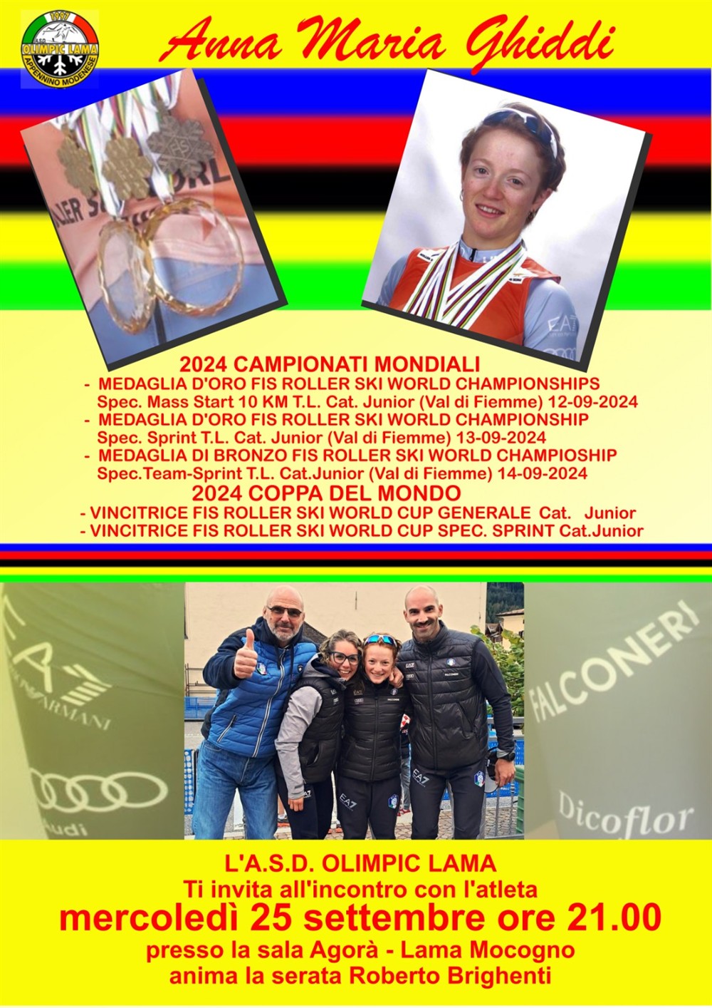 25 Settembre - ore 21 Incontro con l'atleta Anna Maria Ghiddi