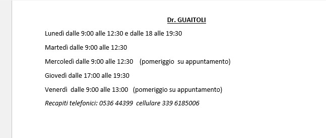 Si comunica che da Lunedì 8 marzo 2021 riprende servizio il Dottor Gianmarco Guaitoli presso il proprio ambulatorio in Via P. Giardini 255 a Lama Mocogno.