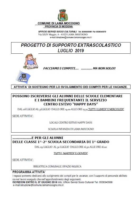 Progetto di supporto extrascolastico: FACCIAMO I COMPITI.... .... MA NON SOLO!!