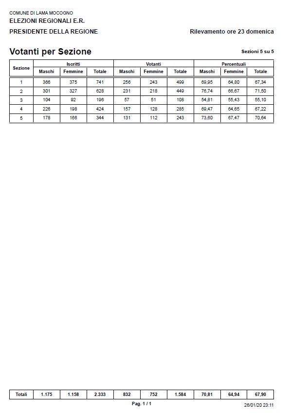 • Elezioni Regionali 26_01_2020 - Votanti ore 23