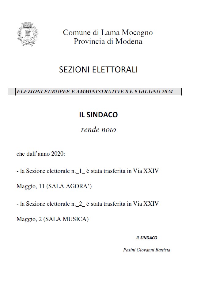 • Avviso sezioni elettorali 1 e 2Avviso sezioni elettorali 1 e 2