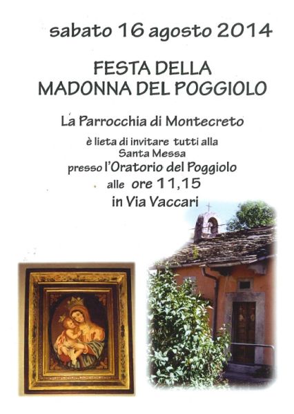 La Parrocchia di Montecreto è lieta di invitare tutti alla Santa Messa presso l'Oratorio del Poggiolo (in via Vaccari) alle ore 11:15