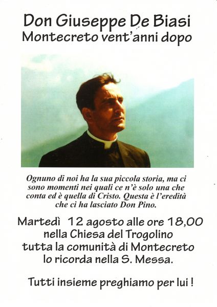 12 Agosto: S. Messa per i 20 anni dalla morte di Don Giuseppe De Biasi