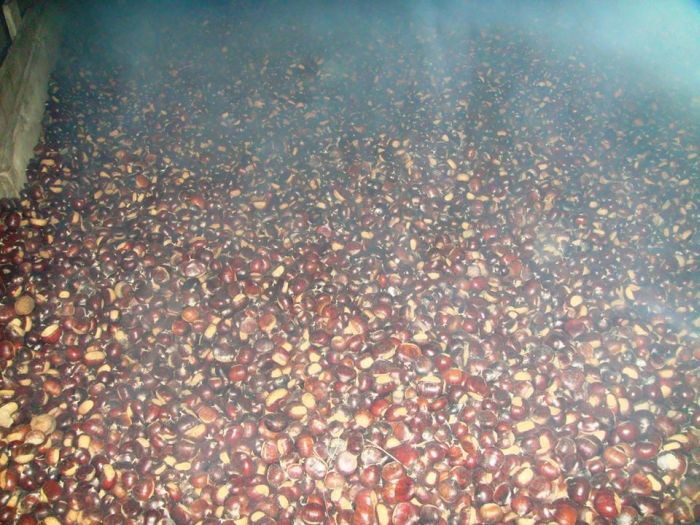 Nei prossimi giorni i ragazzi del Gruppo Ruzzola di Montecreto si occuperanno di mantenere acceso il fuoco per seccare le castagne.