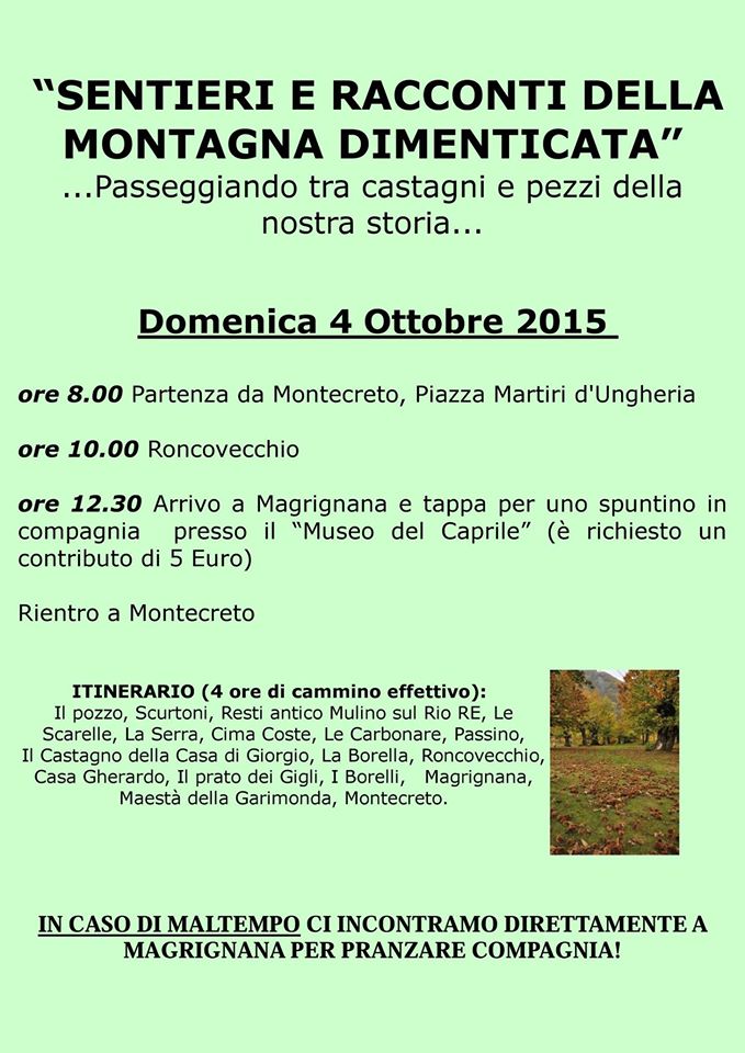 4 Ottobre: "Sentieri e Racconti della Montagna Dimenticata" ... passeggiando tra castagni e pezzi della nostra storia...