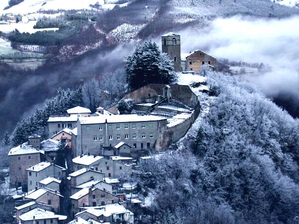 Alla fine del Cinquecento l'abitato di Montecreto aveva raggiunto la sua forma attuale a corti chiuse con funzione difensiva. Fu spogliato di tutti i beni da un saccheggio delle truppe napoleoniche alla fine del settecento.