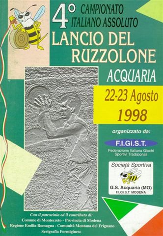 Al libro IV, rubrica 88, tali statuti (che sono in latino) recitano: "A nessuno sia lecito giocare a ruzzola o a formaggio ad rotulam vel caseum per le strade interne alla nostra terra (all'abitato) sotto pena di 4 libbre di multa per ciascuno ed anche fuori di detta terra, per le vie che conducono a S. Maria del Gesù dell'Osservanza e a S. Agostino Vecchio, sotto pena di 40 soldi per ciascuno.