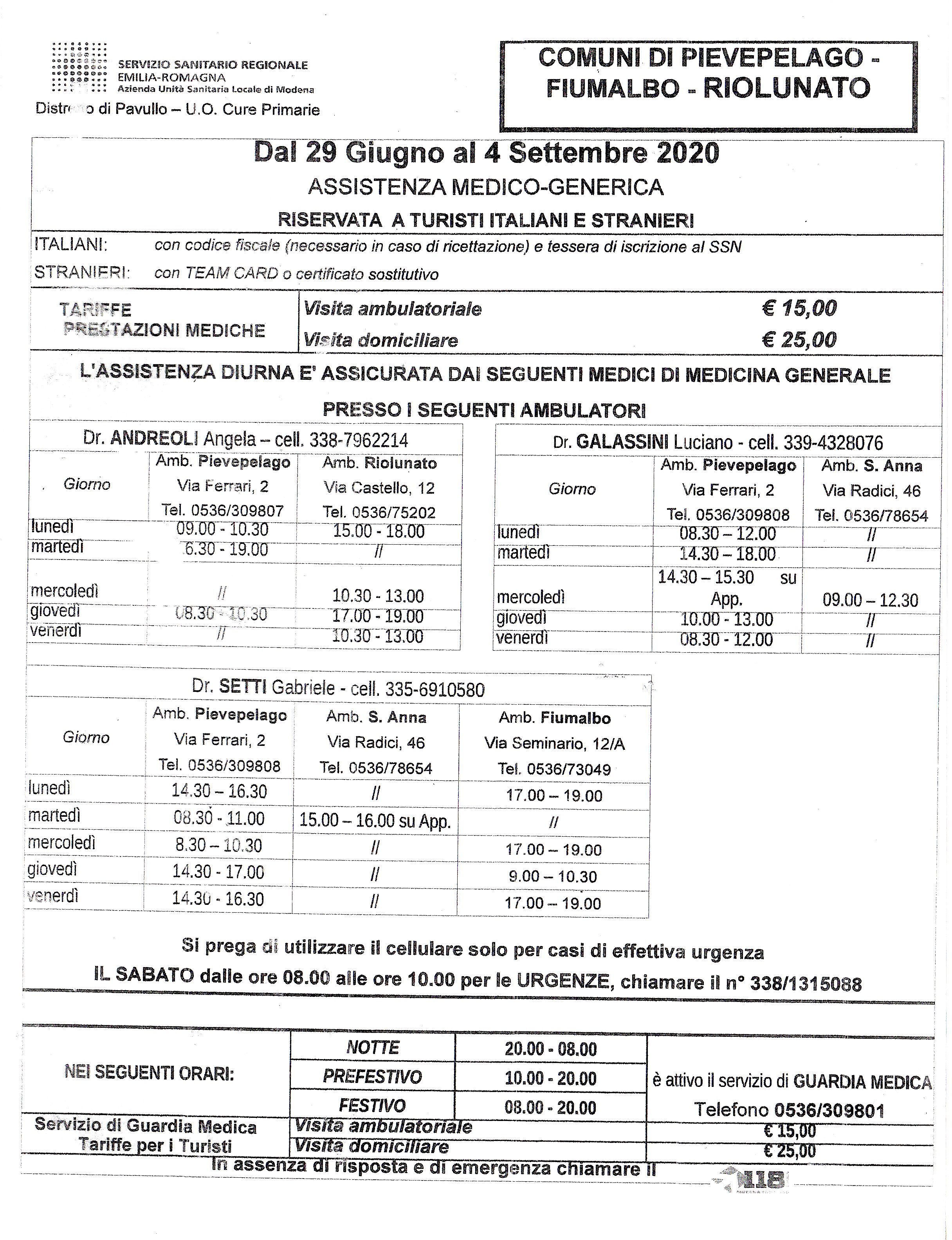 • ORARI MEDICI / guardia medica turistica